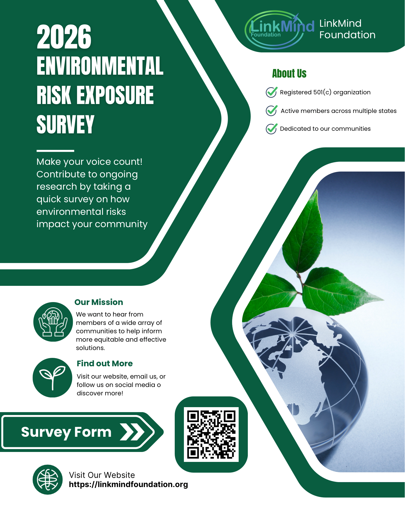 We’re excited to launch our first research project of 2026: Environmental Disparities in Undeserved Communities! We will need your help with the Environmental Risk Exposure Survey to understand the environmental hazards people encounter in their daily lives: how aware they are of the risks around them and how often they’re exposed. We need your help to build quality research on the environmental challenges facing people across the United States.
